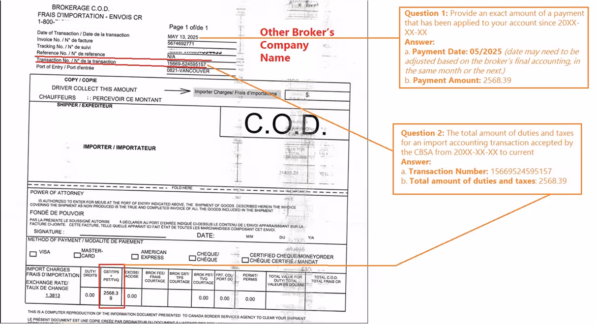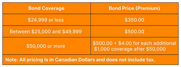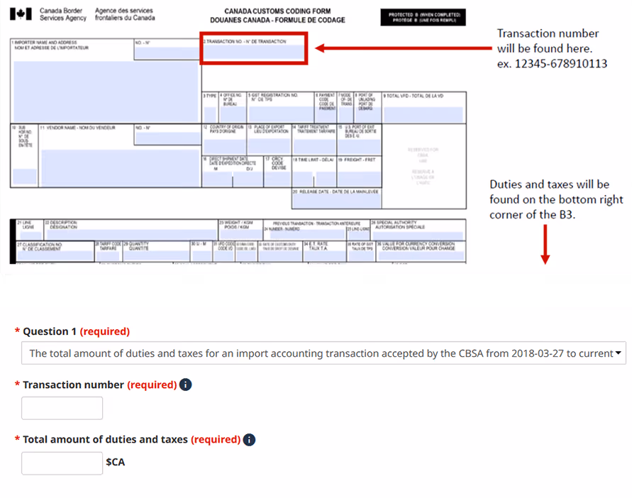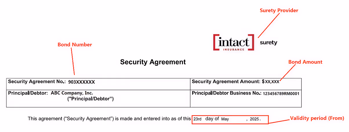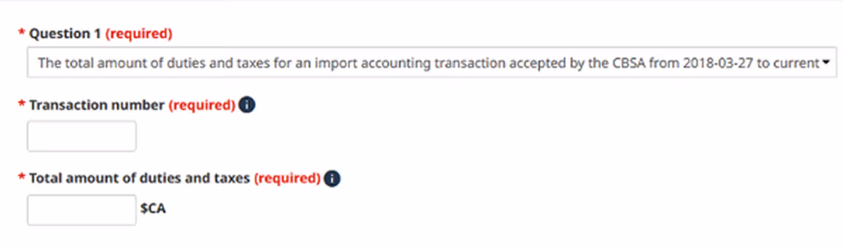 The Canada Border Services Agency (CBSA) requires financial security equal to 50% of your highest monthly duty and tax payable within the last 12 months. This is calculated by taking your highest monthly total for duties and taxes and dividing it by two.