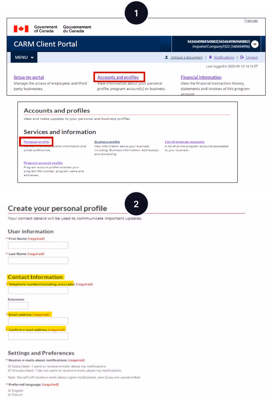 The first person to connect their personal profile to a business account becomes the Business Account Manager (BAM). The BAM has the highest level of access to the business account and can read, write, and edit all business information in the CARM Client Portal. It is advisable to have at least two people in your organization designated as BAMs: