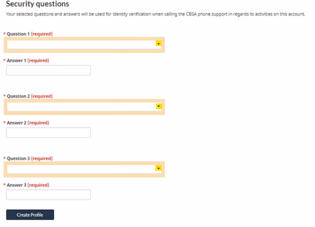 - Statement of Account (SOA) balance: The CCP will ask you to select a date (MM/YYYY) and enter the Statement of Account balance for the selected date. You may contact CBSA directly for this information at 1-800-461-9999.