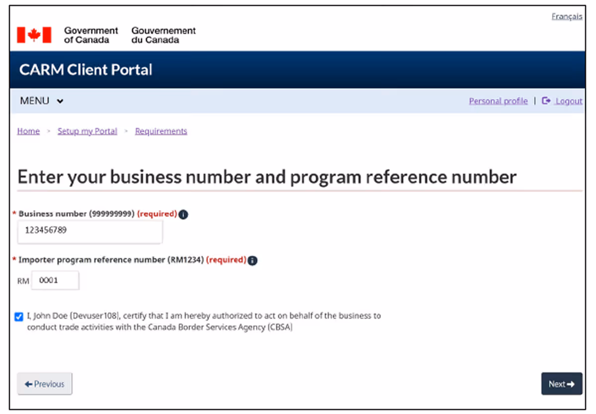 - BN15, is the Importer/exporter program account identifier in addition to the BN9, for example, 123456789RM0001.