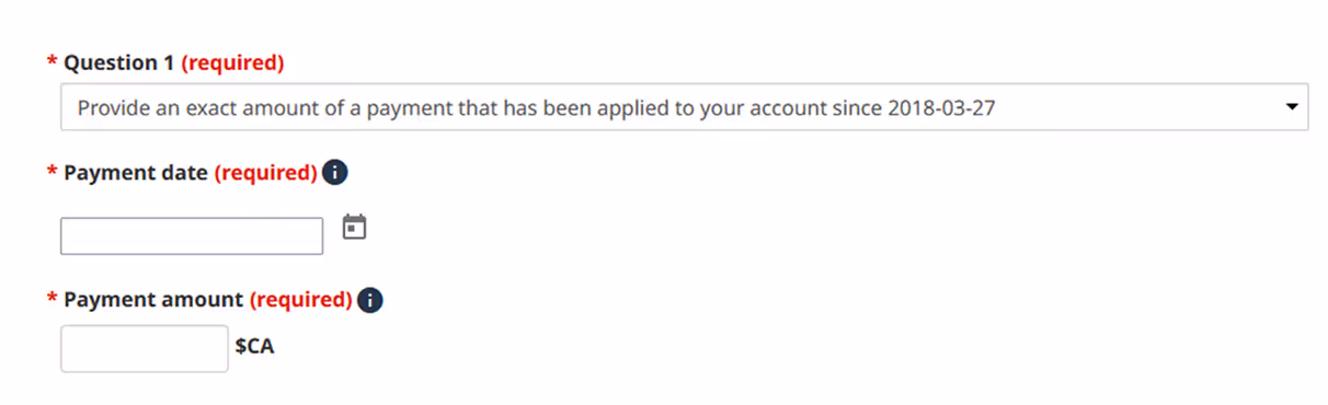 - Payment amount: The CCP will ask you to select a date (MM/YYYY) and enter a payment amount made on the selected date.